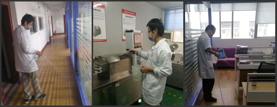安全生產(chǎn),大家的健康是第一位,我們采取了一系列的防疫舉措,首先是全面消毒,涉及廠區(qū)的每個角落;其次是安排專人測量出入廠區(qū)人員體溫;會議采取網(wǎng)絡(luò)語音或視頻進(jìn)行;就餐實行分批次分散就餐。